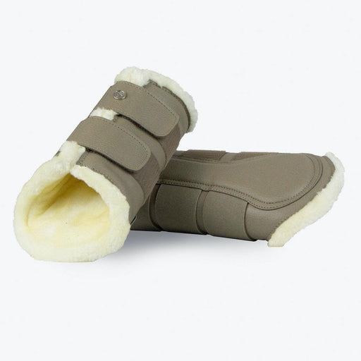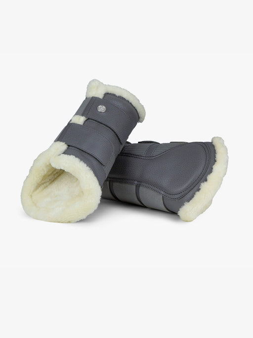 Produktinformation Gepolsterte Hufglocken mit Klettverschluss. Genarbte, vegane Lederoberfläche und weißem Kunstfellrand an der Oberseite. PS Log...